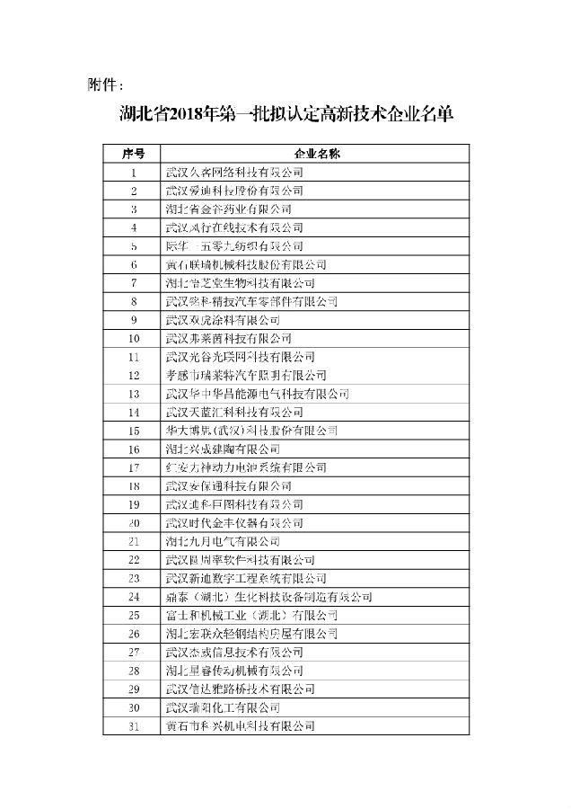 附件:湖北省2018年第一批擬認定高新技術(shù)企業(yè)名單